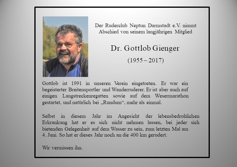 Wir nehmen Abschied vom Rudermitglied Gottlob Gienger